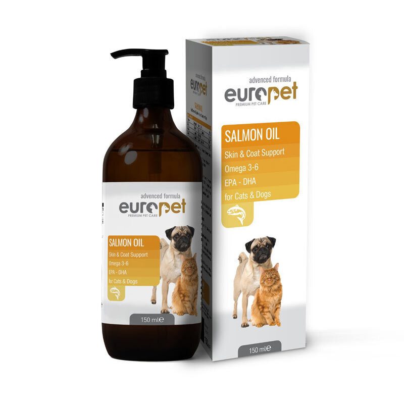 روغن ماهی سالمون یوروپت – مکمل خوراکی برای سگ و گربه با امگا-3 و امگا-6 جهت بهبود سلامت پوست، کاهش ریزش و درخشندگی پوشش مو. مناسب استفاده روزانه برای پتهای بالغ و حساس.
